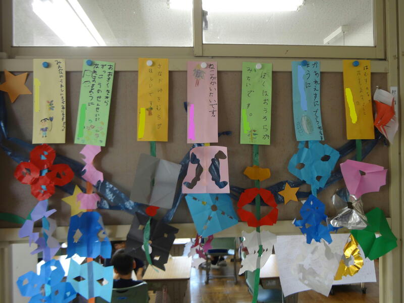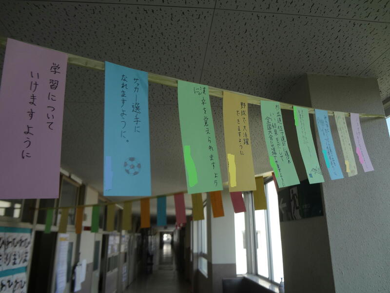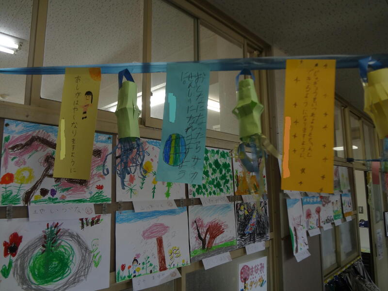 各教室前には、ひばりっ子の短冊が飾られています。