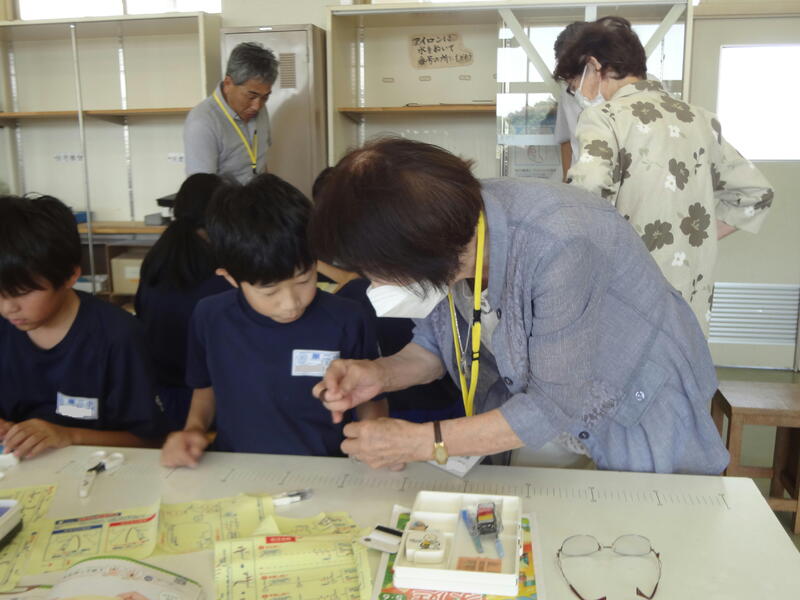 地域の婦人会の皆さんが「協働支援員」として、子どもたちにやさしく裁縫を教えてくださいました。