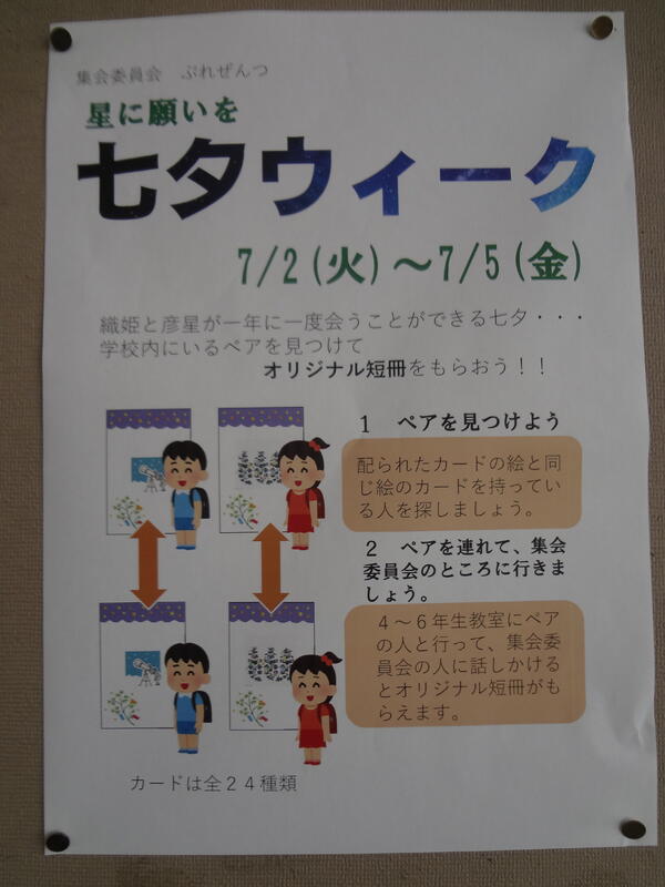 学校内にいるペアを見つけて、オリジナル短冊をもらおうという素敵な企画です。