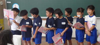 大人にとってもなつかしい「おおきなかぶ」「スイミー」「一つの花」といった物語を音読したり、感想を話したりしています。