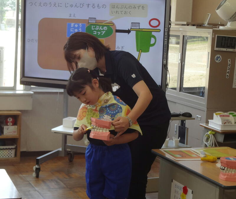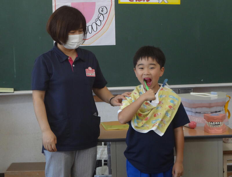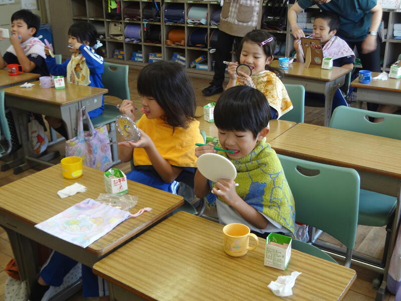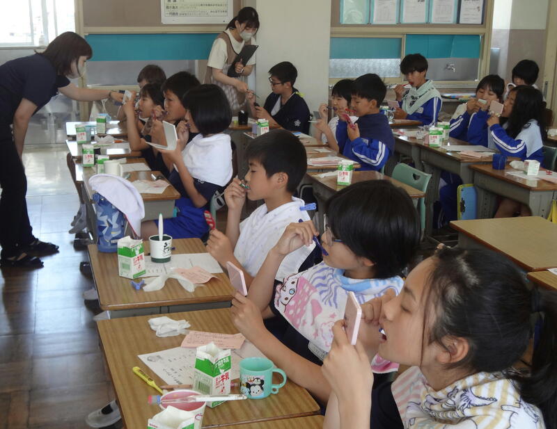 子どもたちは、真剣に自分の歯と向き合い、歯ブラシを動かしていました。