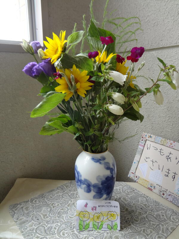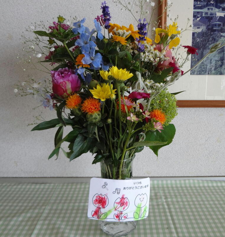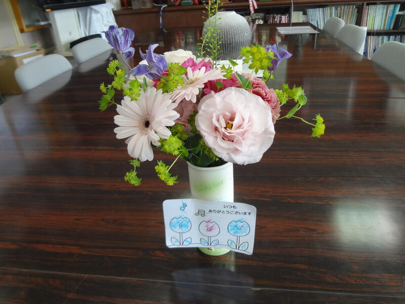 今年も聖愛ちいろば園様より、きれいな花束をいただきました。