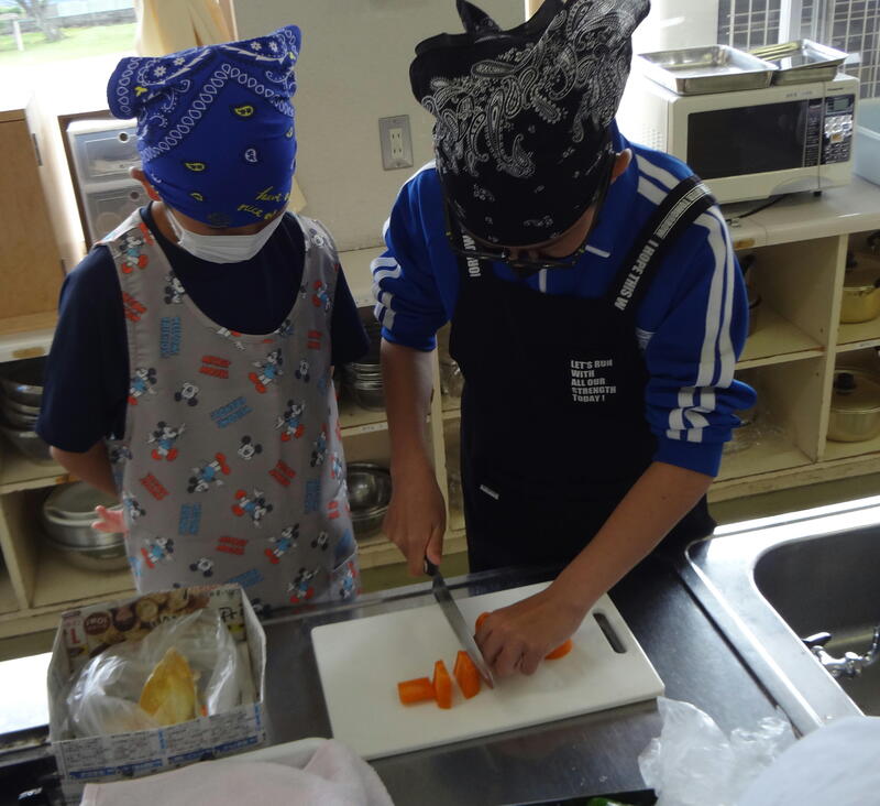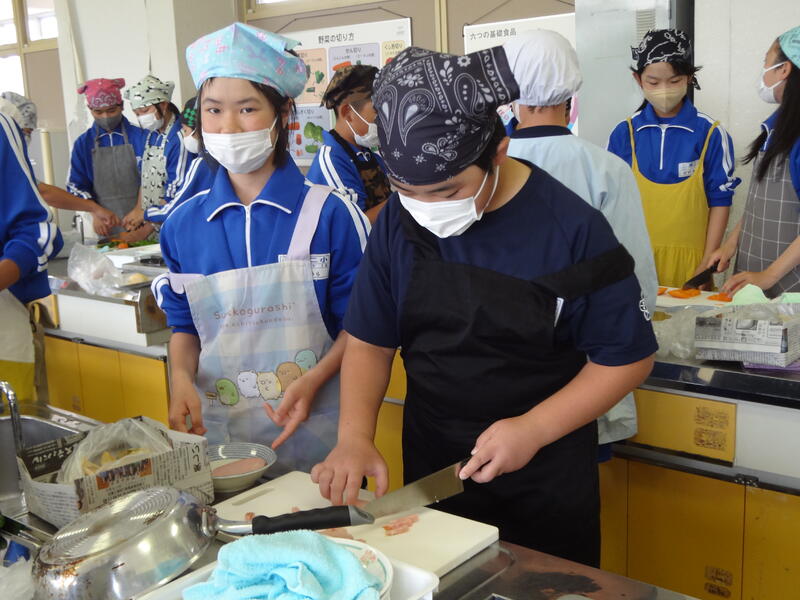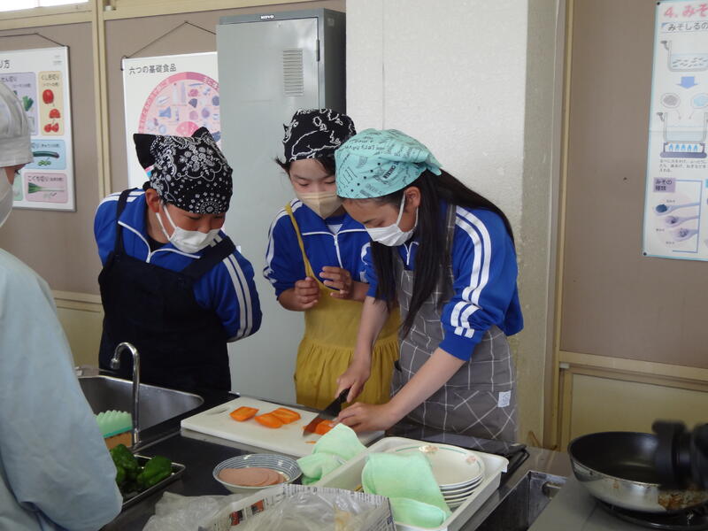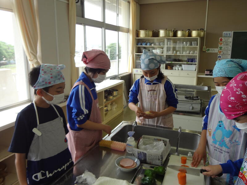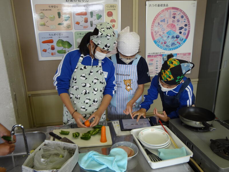 昨日、陸上をがんばった6年生は、今日、家庭科で「野菜いため」にチャレンジです。