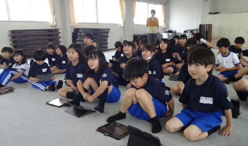 2年生は、タブレットをつかって、アルファベットを学習していました。