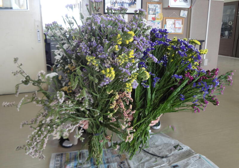 自宅で丹精込めて育てた花とのこと。早速、各学級に飾らせてもらいました。