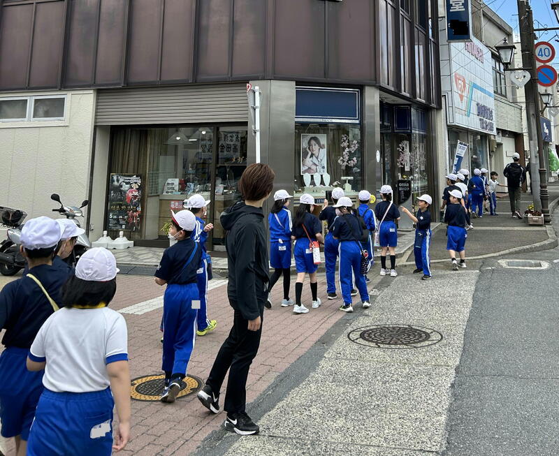 前回は屋上から学校のまわりのようすを確認しましたが、今日は実際にまちに出かけ、何があるのかを見て回りました。