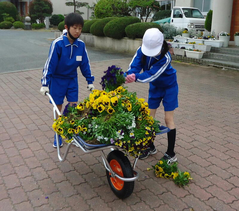 学校を華やかに彩り、ひばりっ子を明るい気持ちにしてくれた花たちに感謝しながら丁寧に抜いていきます。