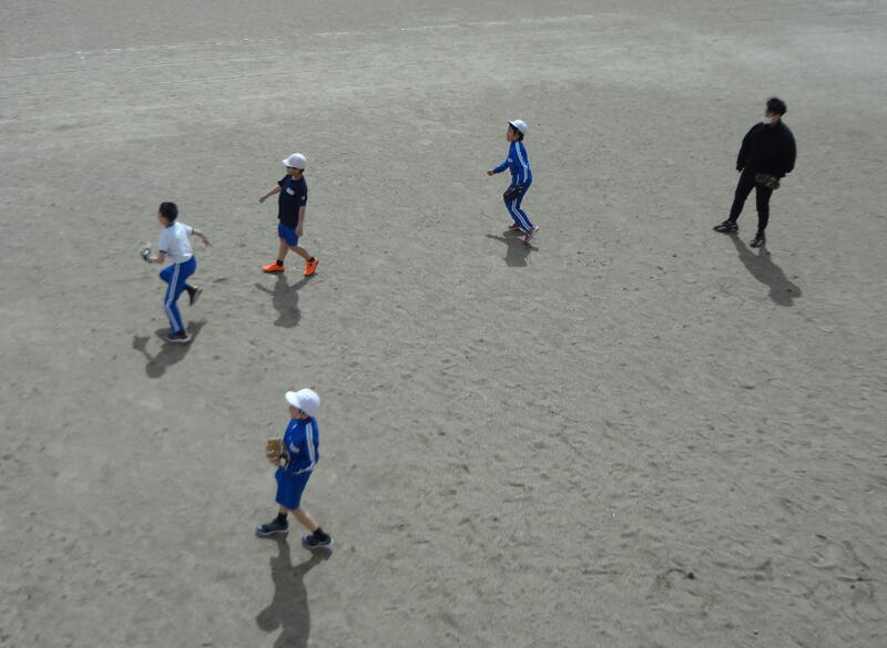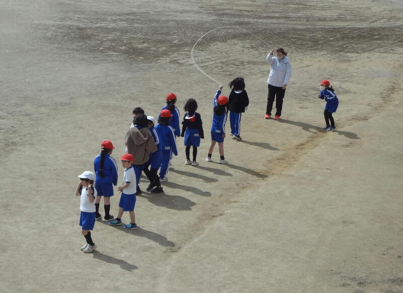 校庭では、担任の先生と寒さをものともせず元気に遊んでいました。