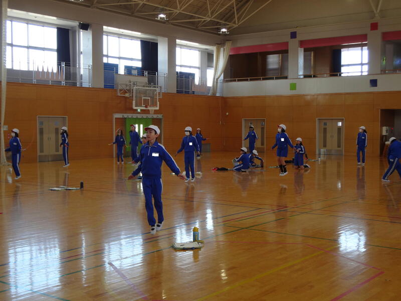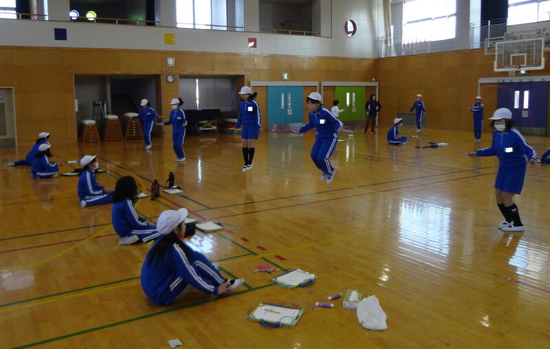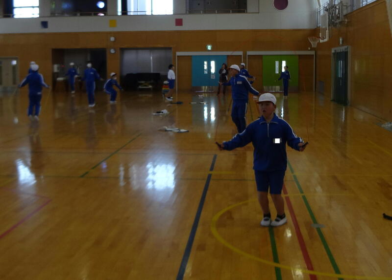 5年生は、前跳び2分30秒で合格を目指しています。他のあや跳びや二重跳びなど、自己の記録更新を目標に練習に励んでいます。