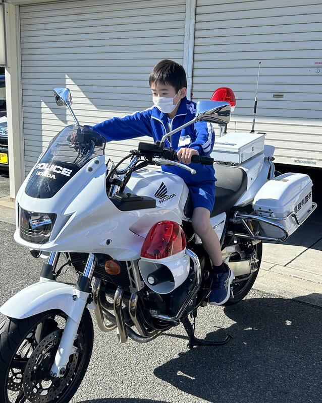 警察官の仕事について、お話を聴き、実際にパトカーや白バイに乗せてもらいました。