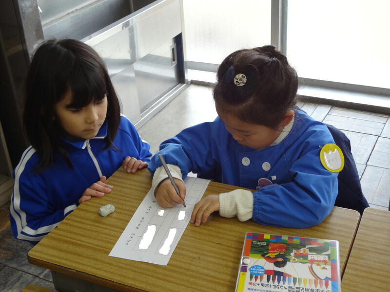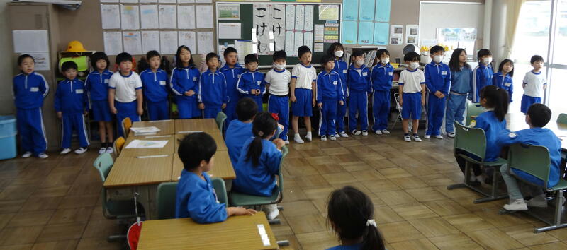 今日は、聖愛こども園の年長さんが原二小にやってきました。