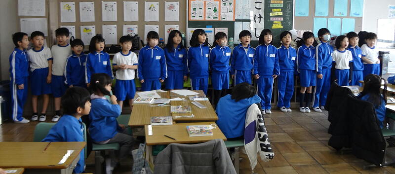 最後は音楽。1年生が校歌を歌って聴かせます。