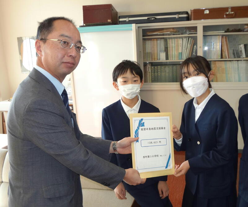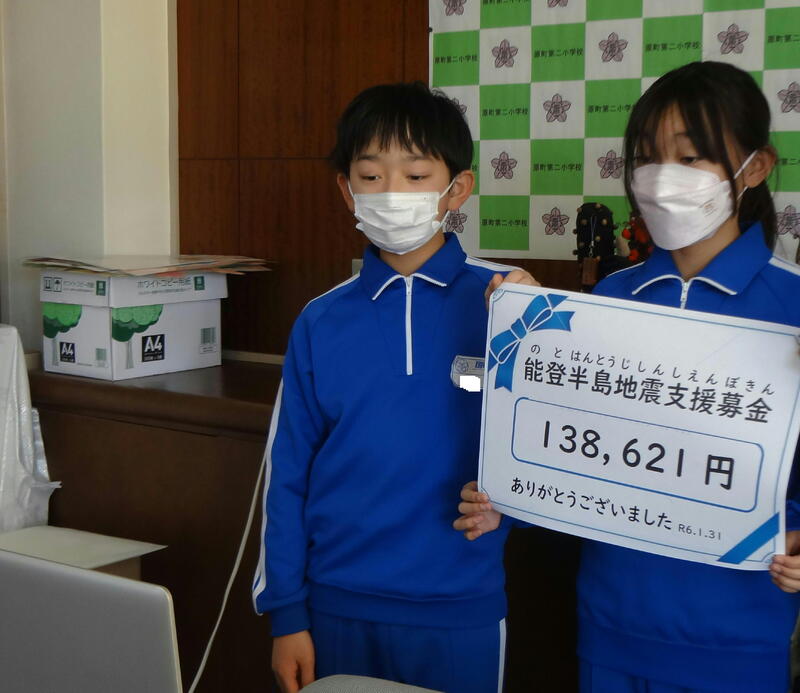 1月31日(水)、福島民報社様に、6年生の代表児童から「全校で協力して集めました。被災地に届けてください。」のメッセージとともにお渡ししました。募金は、福島民報社を通して日本赤十字社におくられます。