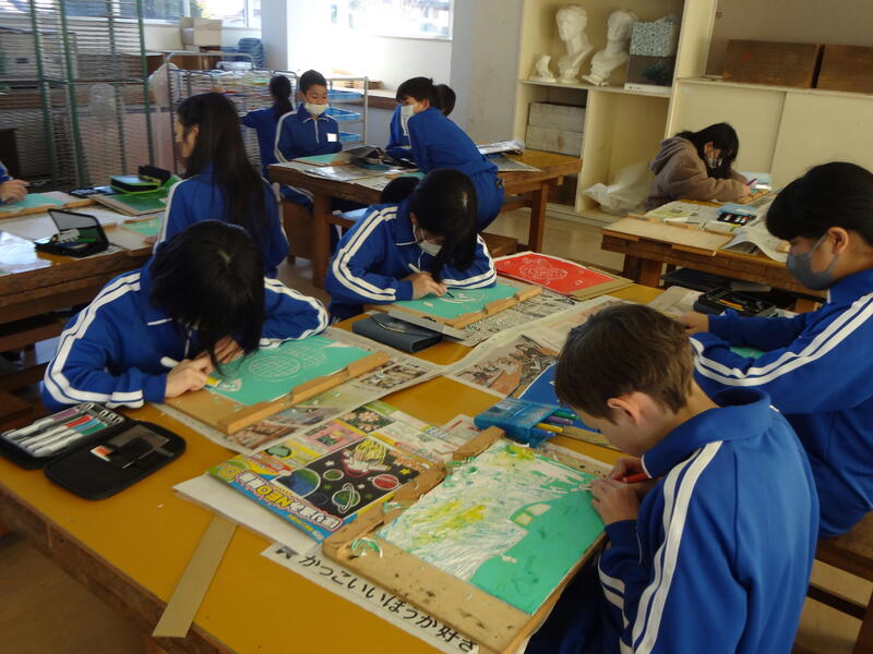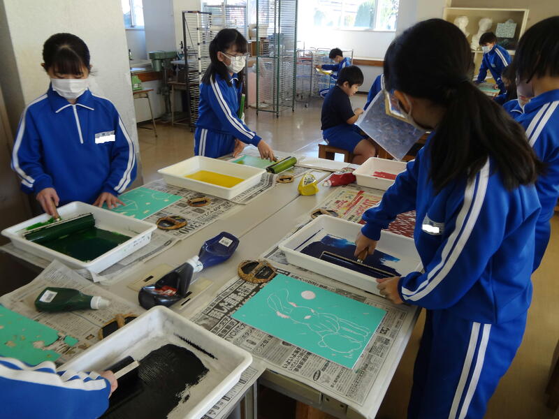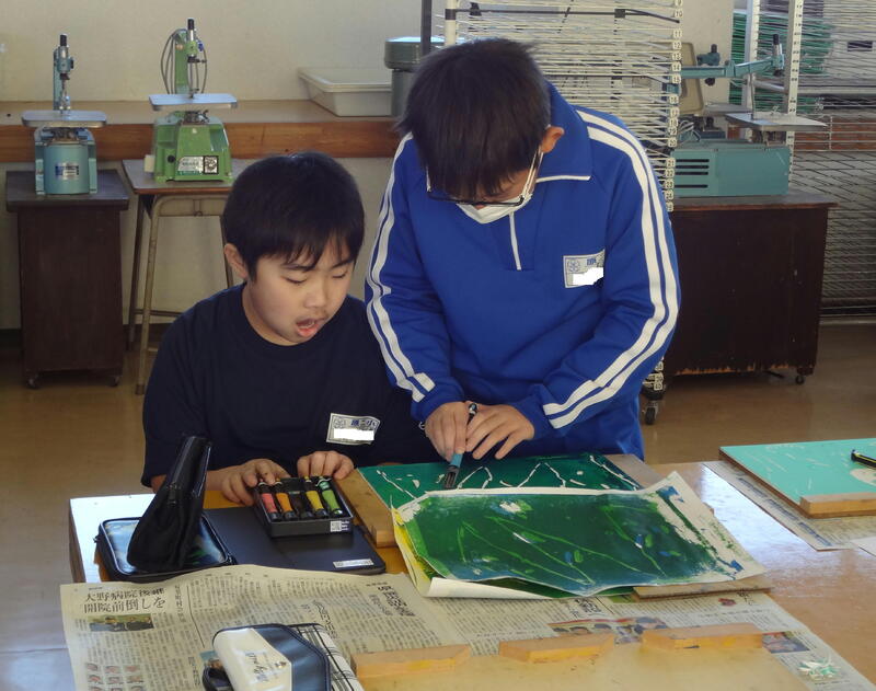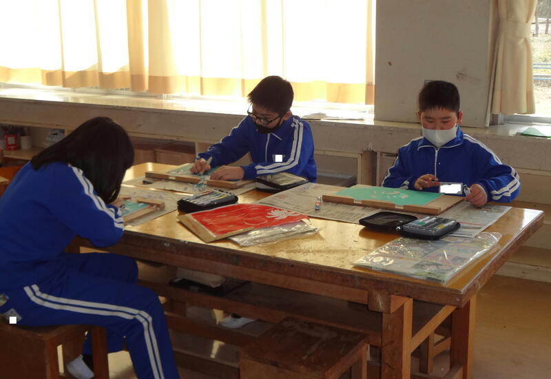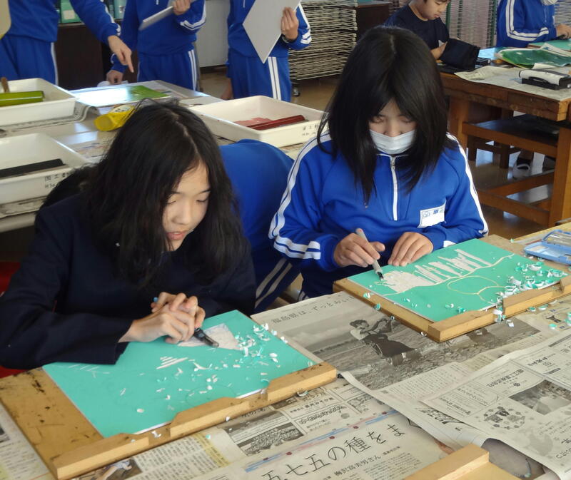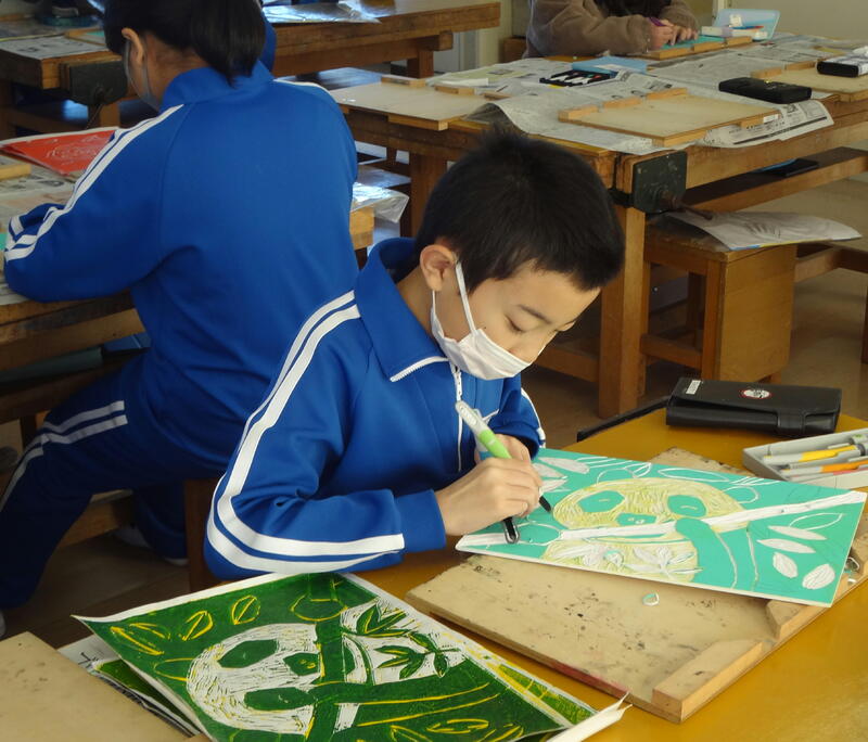 彫刻刀を上手に使い、自分の絵を思い思いに彫り進めていました。