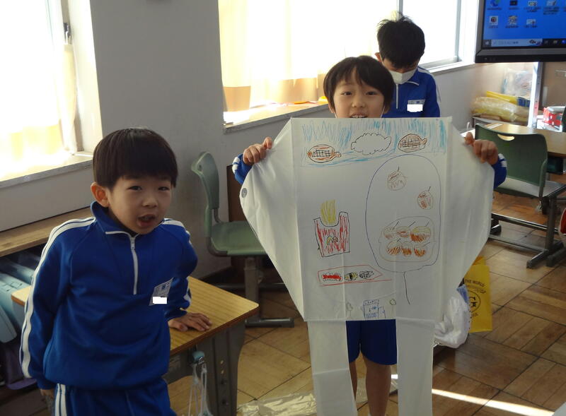 1年生は、たこづくりをしています。あげるのが楽しみですね。