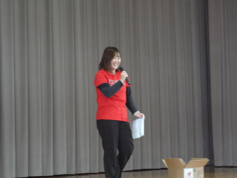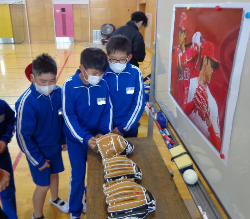 今日は、緊急全校集会を開いて、大谷選手?に登場していただき、グローブのお披露目を行いました。