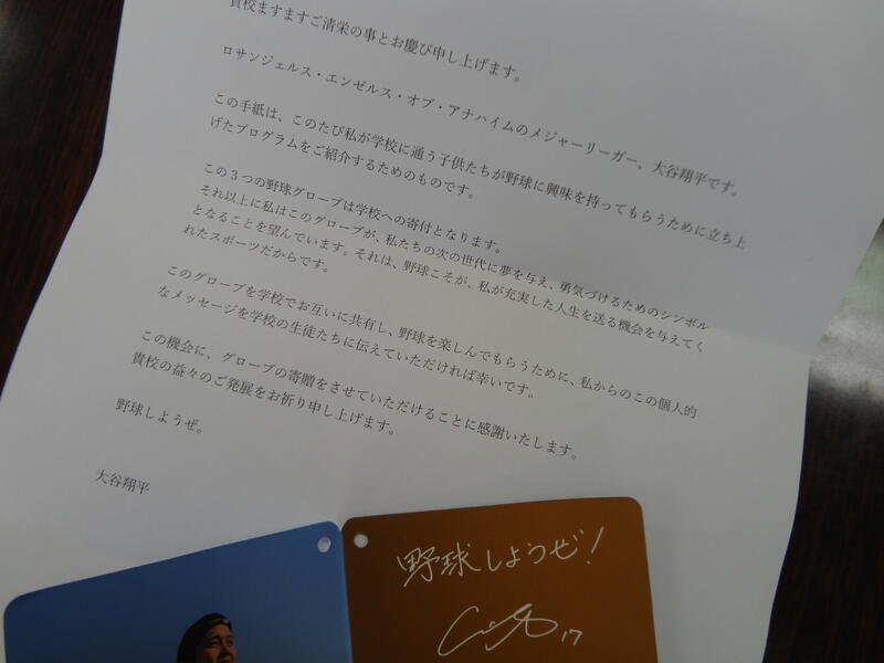 大谷翔平選手からの手紙です。熱い思いが伝わってきます。