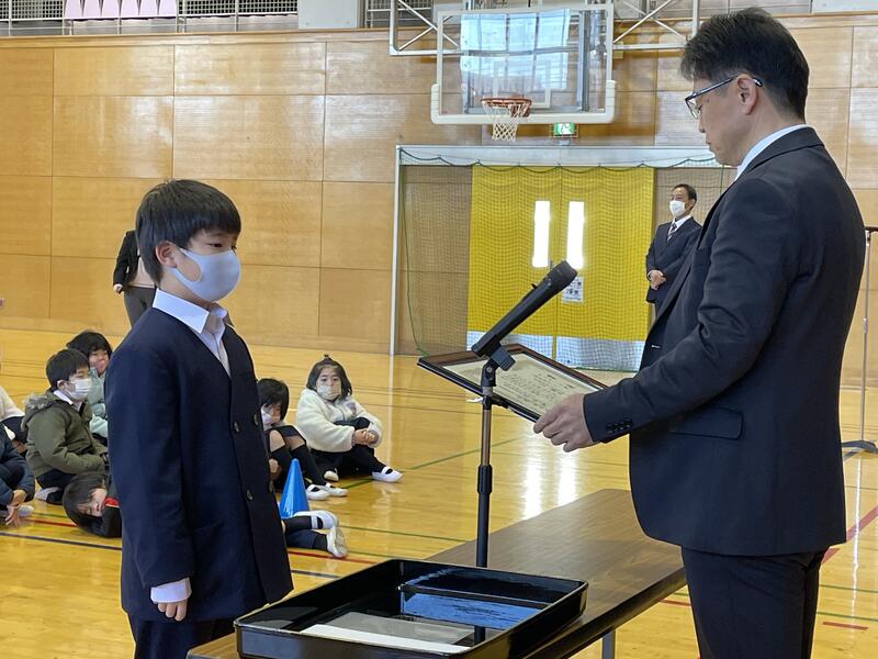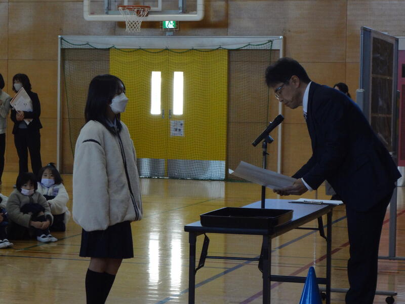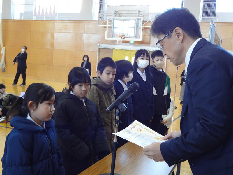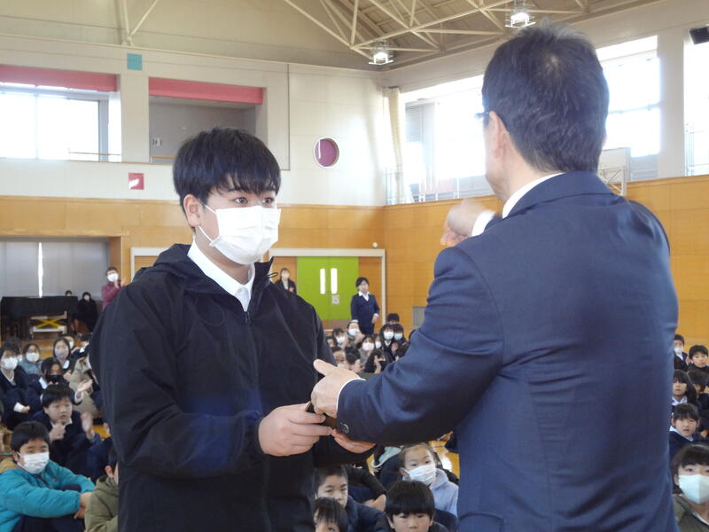 久しぶりに体育館に集まっての式でした。子どもたちの顔を見ながら対面で話すのは、やはりいいものですね。