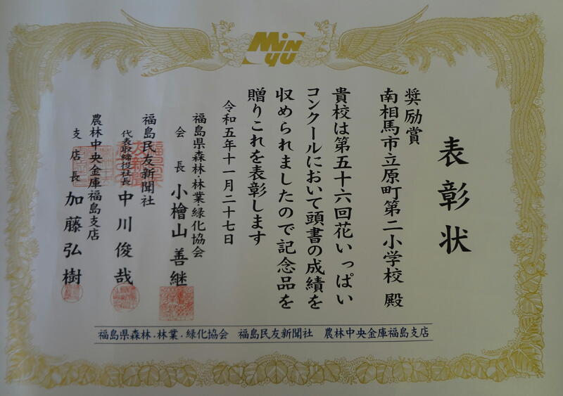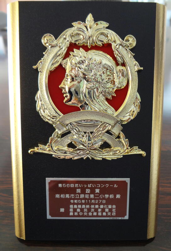 原町二小の特色である「花いっぱい活動」が認められ、「奨励賞」をいただきました。