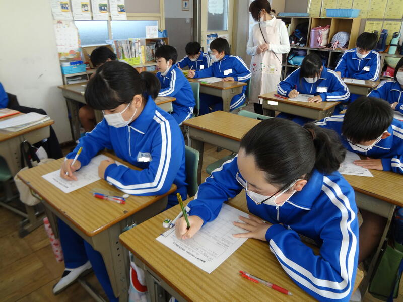 5年生は、栄養士の先生から食育の授業を受けてました。