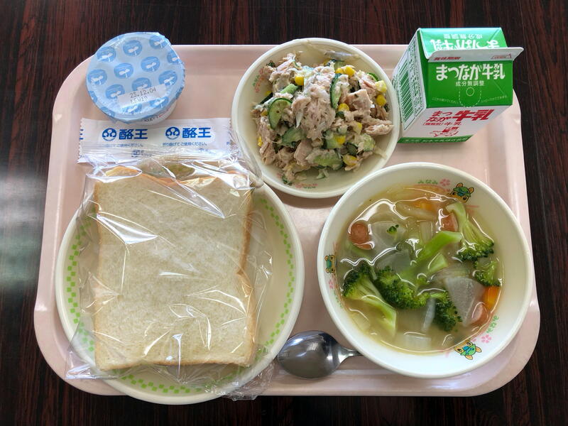 今日の給食は、セルフツナサンド・ポトフ・ヨーグルト・牛乳でした。