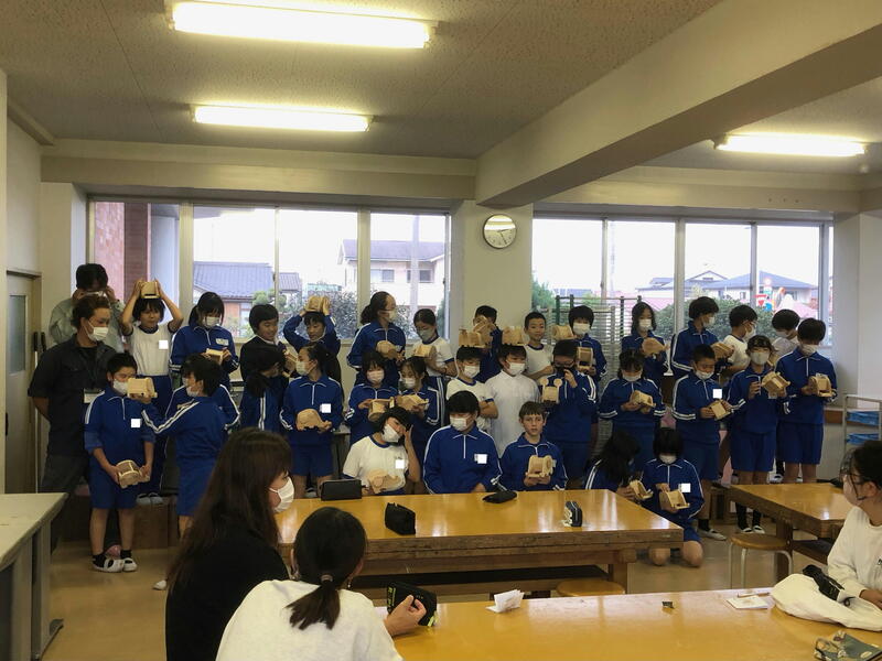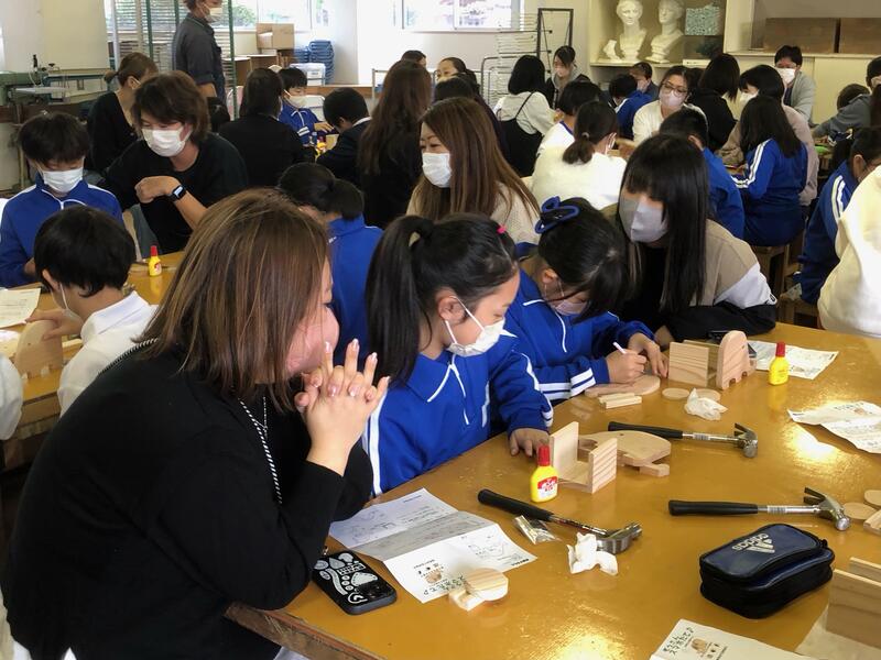 5年生は、森林組合の方のご指導のもと、「親子木工教室」です。