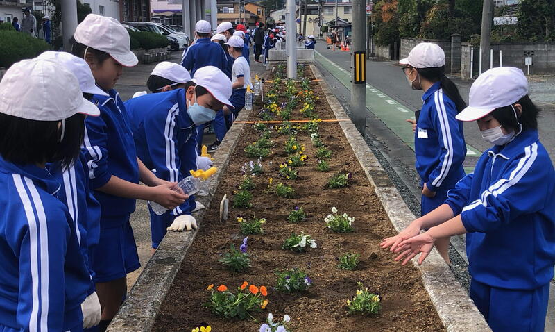 本校の特色ある教育活動の1つ、「花いっぱい活動」を行いました。