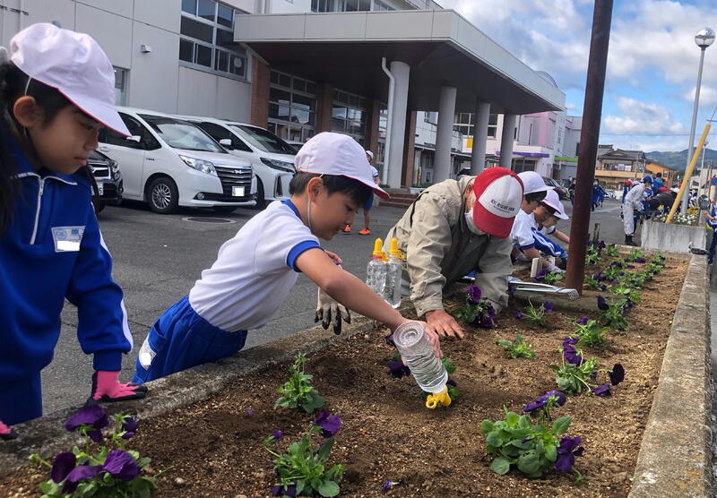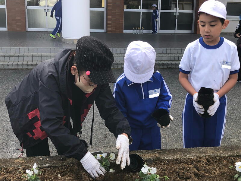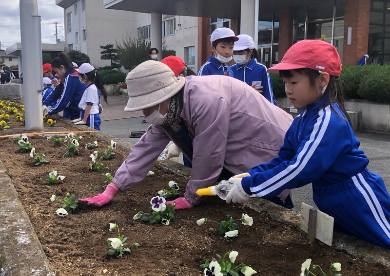 この後、環境委員会の児童は、聖愛ちいろば園と聖愛こども園にパンジーを植えたプランターを届け、日頃の感謝の気持ちを伝えました。