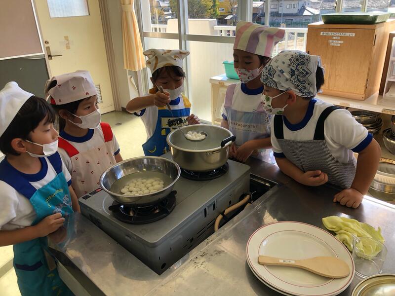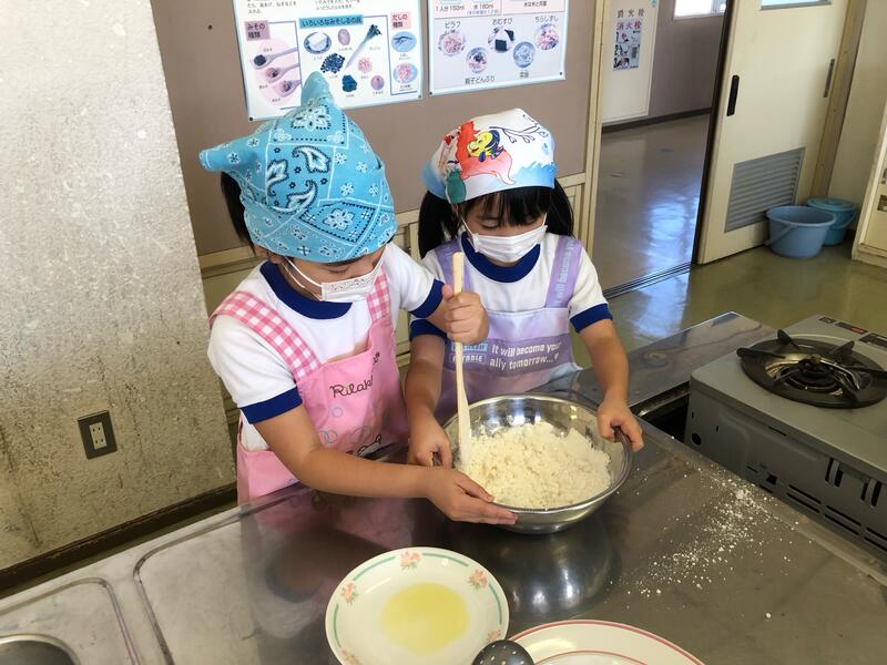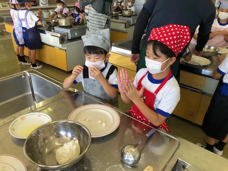 次に、生地を丸めて、だんごの形をつくります。とっても上手です。