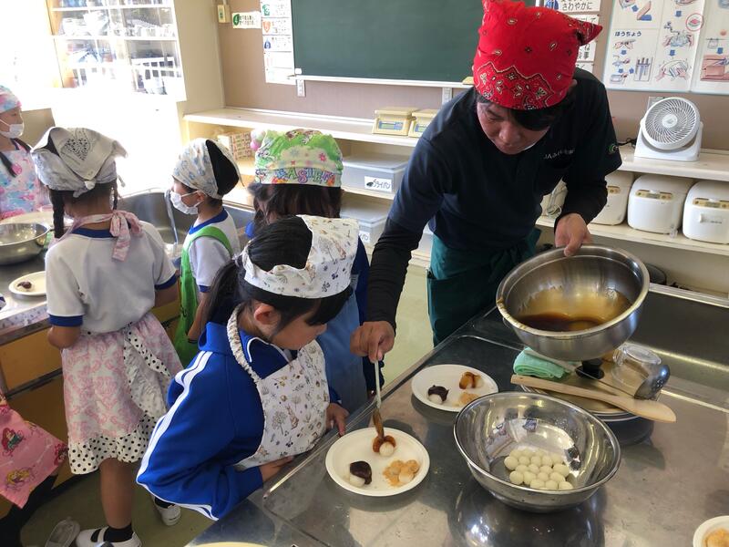 JAふくしま未来の方をお招きして、1年生が米粉だんごづくりにチャレンジしました。