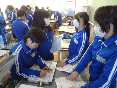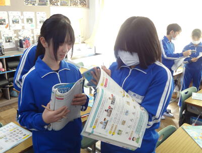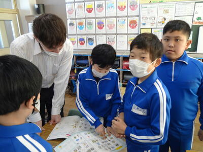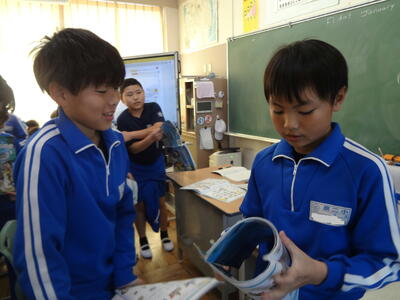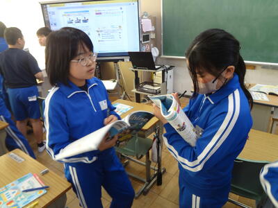 5年生の教室をのぞくと、ペアで会話をしていました。