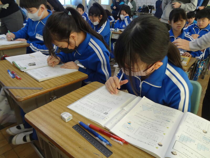 子どもたちは、自力解決からペア、全体での話合いをとおして学びを深めていきました。