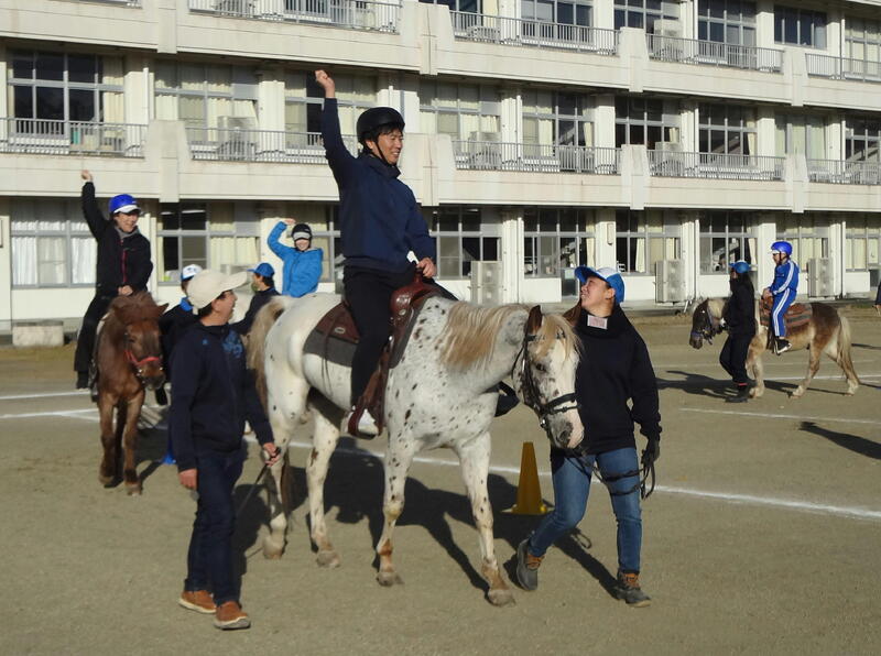 昨年度に引き続き、ハーモニーセンターの皆さんとポニー4頭がきてくださいました。