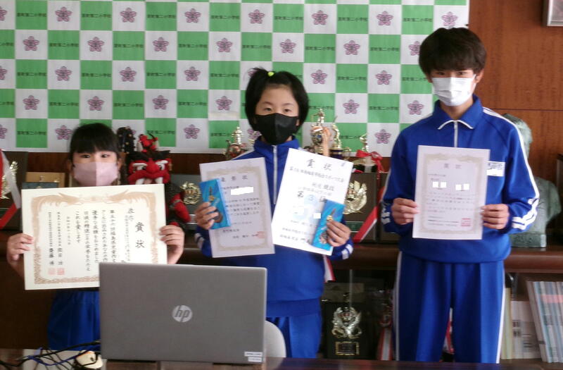 県作文コンクール・剣道・テニスで優秀な成績をおさめたひばりっ子の表彰を行いました。