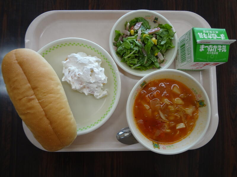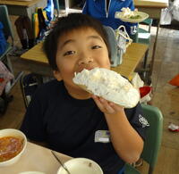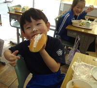 自分でホイップクリームをコッペパンにはさんでいただきます。