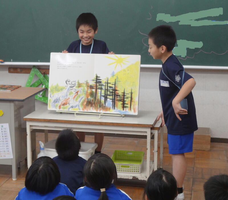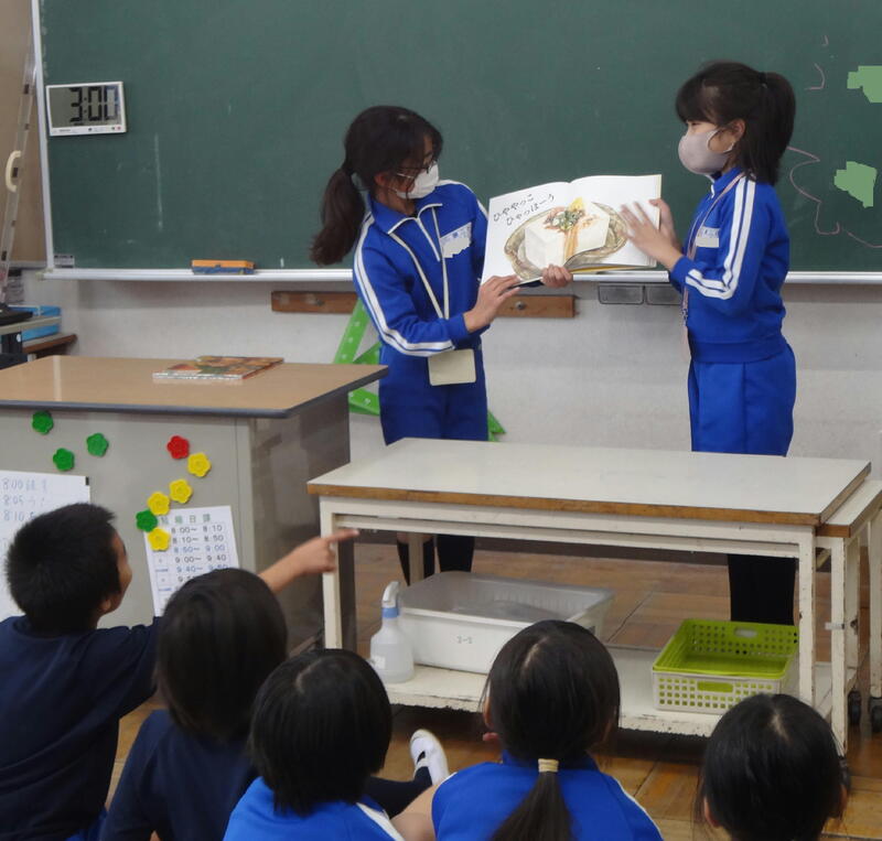 2年生教室では、図書委員による読み聞かせが行われていました。
