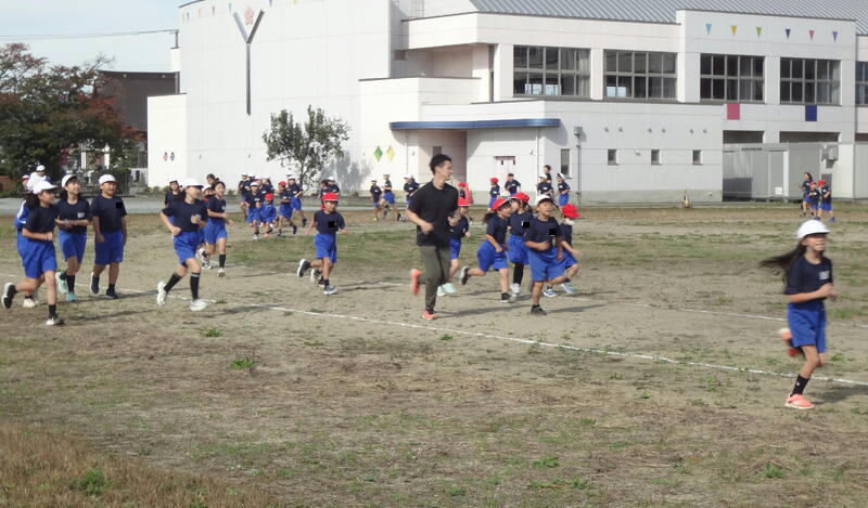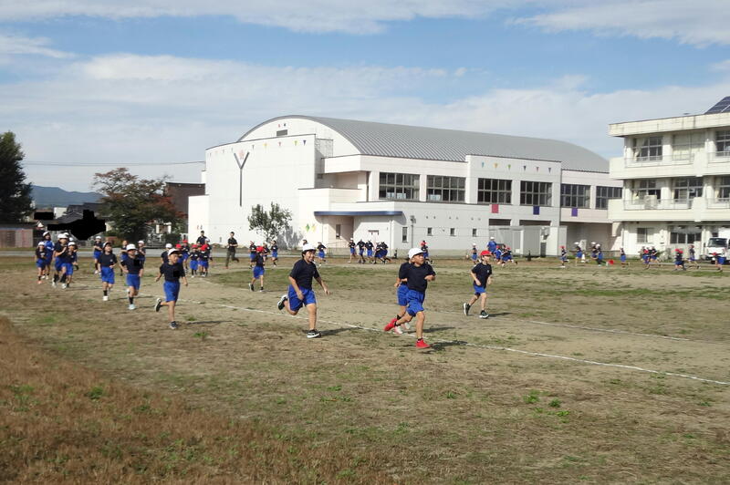 今日も暑さの残る日でしたが、秋晴れのもと、全校生が元気に走りました。