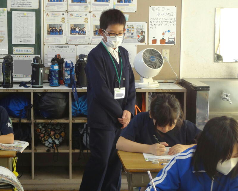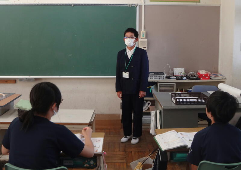 「みなさん、いつも教室で友達とたくさん話していますか。学校はいろんな友達がいるから楽しいのです。いっぱい話すことでその人のよいところや今まで知らなかったことを発見することができると思います。みんなが仲の良い原町二小にしていきたいと思います。」
