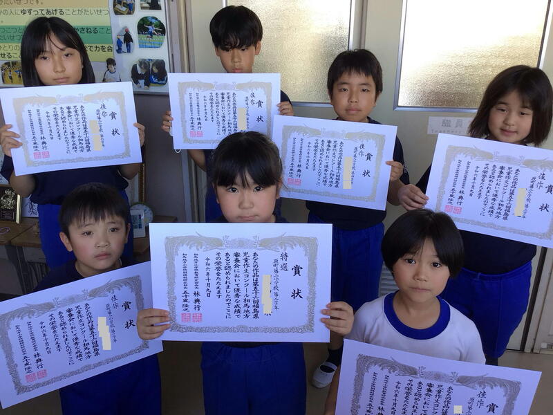 福島県作文コンクール相馬地方審査会において、優秀な成績をおさめたひばりっ子たちです。