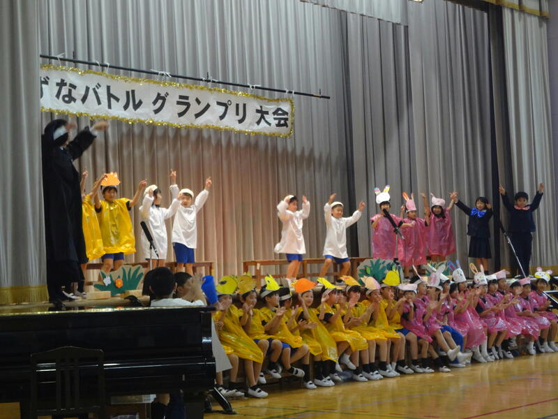 きつねさんチームとうさぎさんチームによる「早口言葉」「音楽」によるバトルが繰り広げられました。