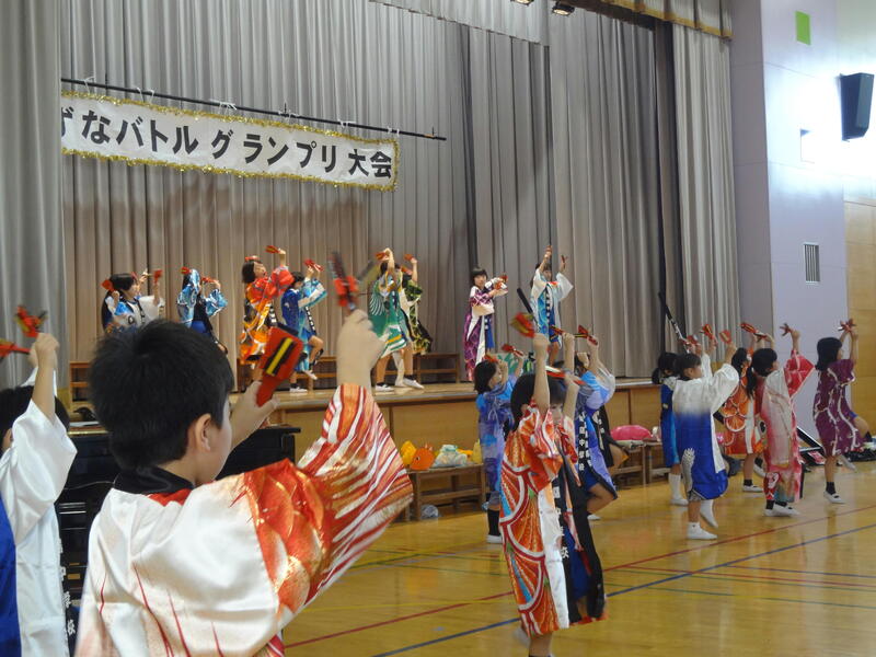 最後は、全員で「よさこい」をおどりました。こいのぼりの法被に身を包み、踊りがビシッと決まりました。