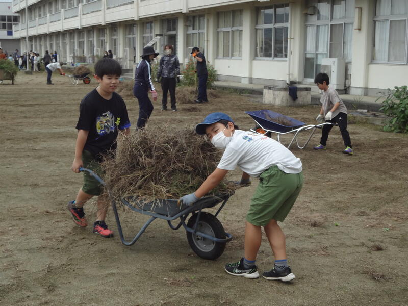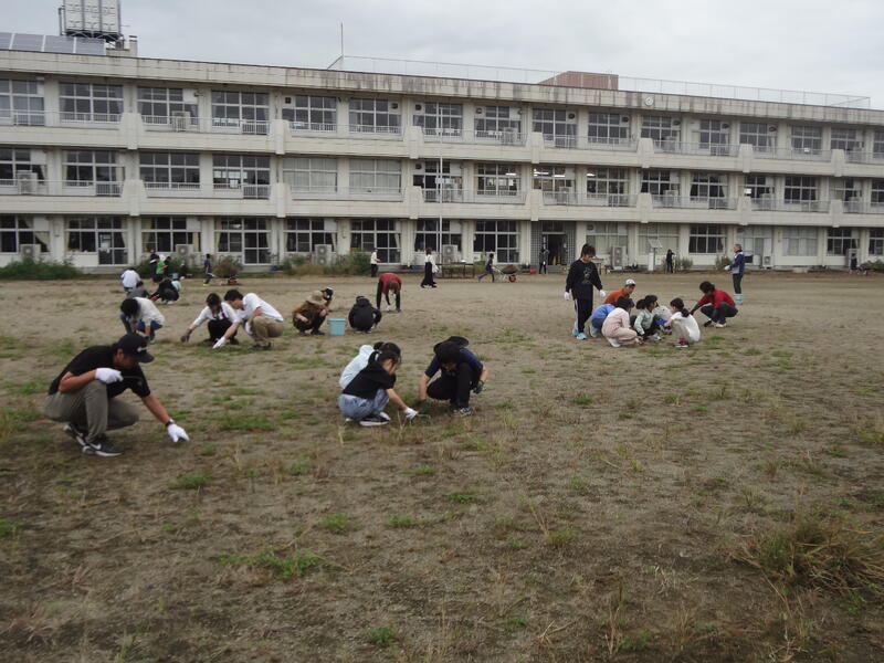 猛暑の影響もあってか、校庭の草の成長は著しく、除草作業が追いつかない状況でしたが、原二小親子マンパワーでなんとか校庭らしくなりました。