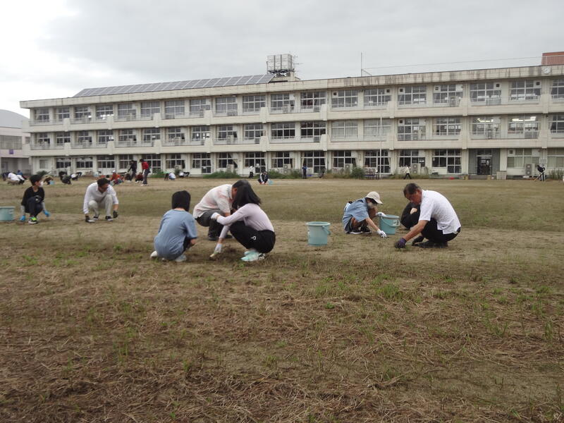 親子で一所懸命に草をむしっています。みるみる校庭がすっきりしていきます。