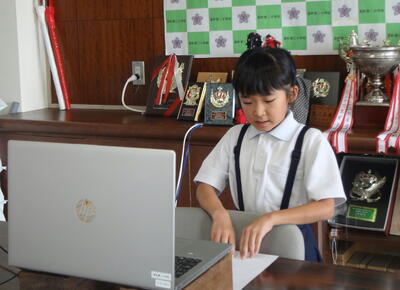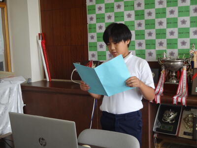 お昼にリモートで前期終業式を行いました。