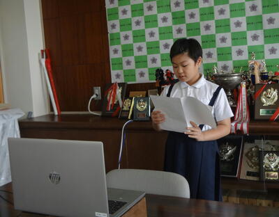 私(校長)の話のあと、代表児童が前期の思い出やがんばったことを発表しました。