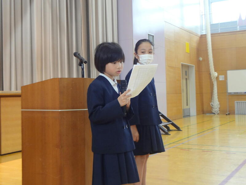 後期始業式では、代表児童から後期にがんばりたいことの発表がありました。