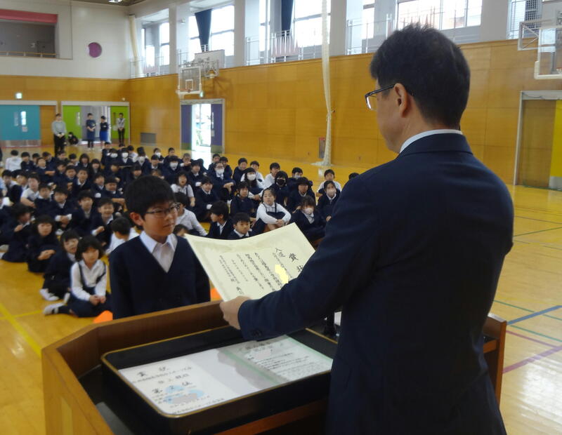始業式後には、前期のがんばりを讃える表彰を行いました。