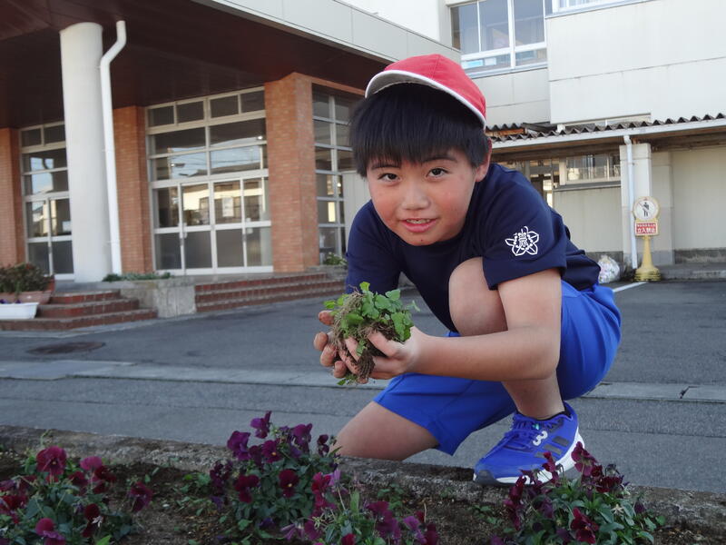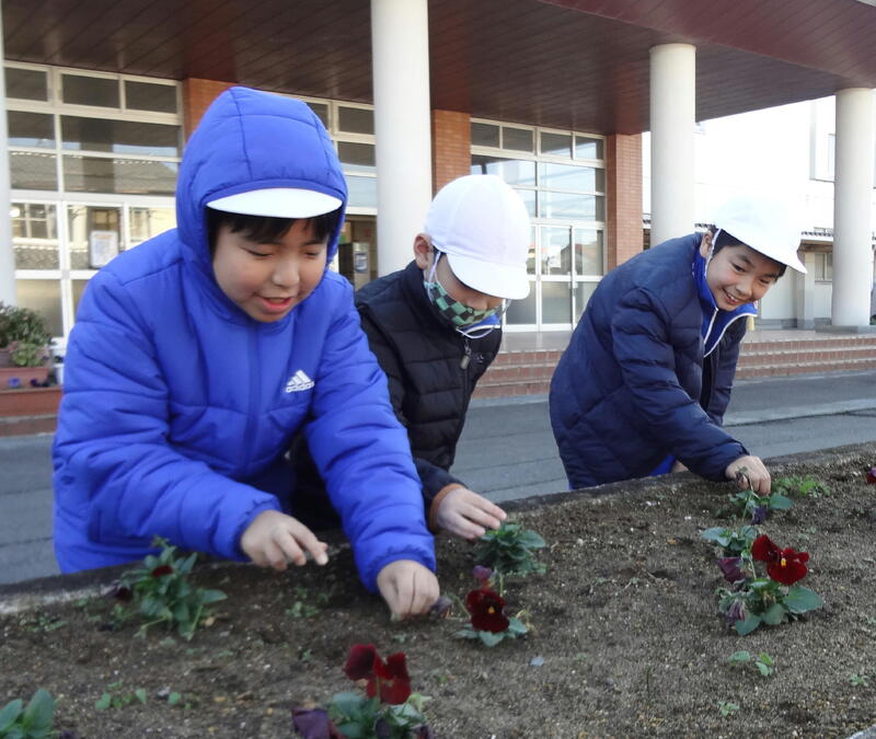 冬でも意外と草は生えているものです。子どもたちは、美しい花壇にするために「まごころをこめて」(至誠)「いっしょうけんめいに」(勤労)はたらきました。