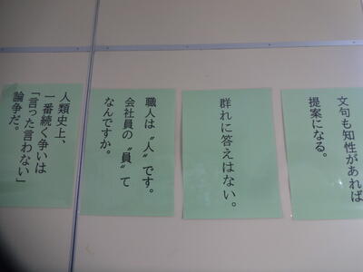 今日から2日間の日程で期末テストを実施しています。2学期の学習の成果を思う存分発揮してください。そう言えば、3Fフロアに面白いキャッチコピーが掲示してありました。「暗記は忘れる。気づきは残る。」もその一つ。何事にも自分から主体的に関わって、気づきの質を高めていきたいものです。