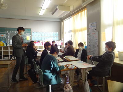 2022年11月24日 18時35分原町二中学区の先生方(原一生、高平小)が一堂に会し、本講で授業研究会を開きました。1年生から3年生までの授業を見ていただいたあと、小学校と中学校が連携して取り組むべきことについて話し合いました。活発に意見が出され、大変有意義な時間となりました。